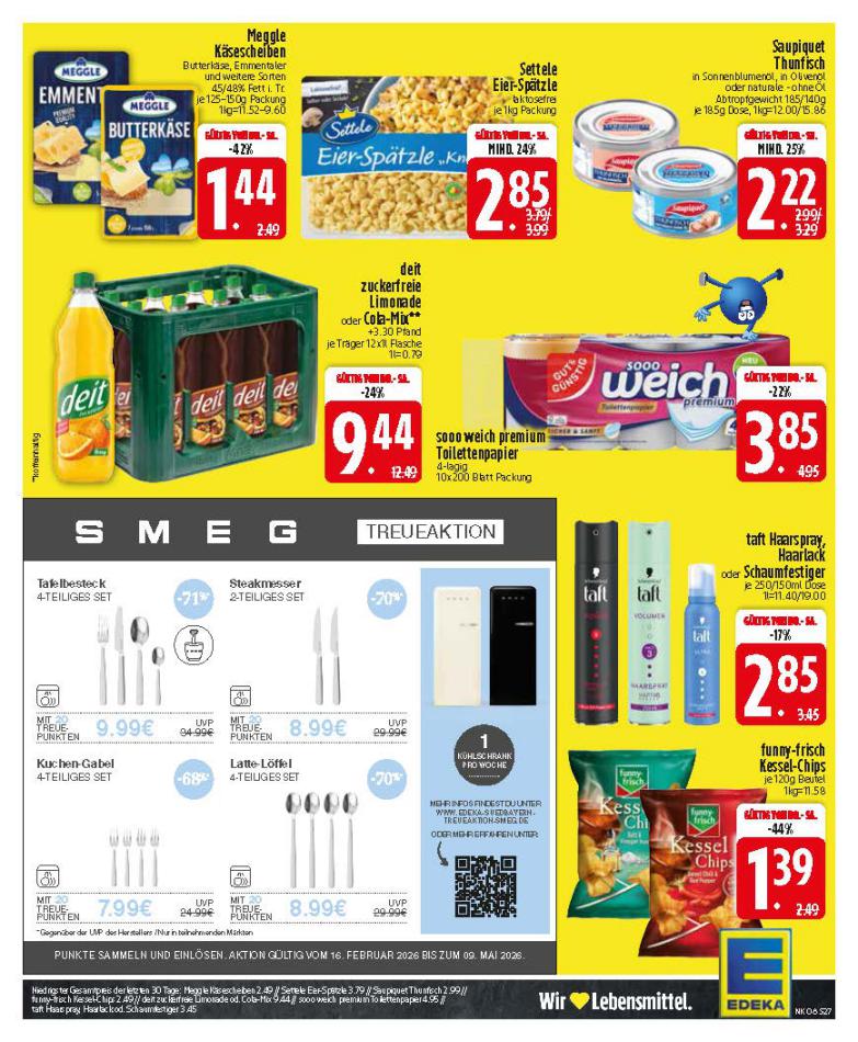 Sehen Sie unten die letzten Kataloge von Edeka gültig ab 16 Februar bis 21 Februar. Sie sehen Rezensionen an, teilen Sie Ihre Meinung und Sie können über Katalogprodukte lesen. Sie können auch alle verfügbaren Kataloge aus derselben Kategorie ansehen, um gleichen Produkte in anderen Läden zu vergleichen. Verpassen Sie nicht Schnäppchen und Bereiten Sie Ihre Online-Shopping und Sparen Sie das ganze Jahr. Auf dieser Seite, Edeka Angeboten, Prospekte, Promotion und Sonderangebote.