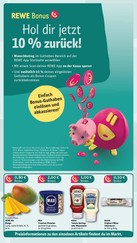Sehen Sie unten die letzten Kataloge von REWE gültig ab 23 Februar bis 28 Februar. Sie sehen Rezensionen an, teilen Sie Ihre Meinung und Sie können über Katalogprodukte lesen. Sie können auch alle verfügbaren Kataloge aus derselben Kategorie ansehen, um gleichen Produkte in anderen Läden zu vergleichen. Verpassen Sie nicht Schnäppchen und Bereiten Sie Ihre Online-Shopping und Sparen Sie das ganze Jahr. Auf dieser Seite, REWE Angeboten, Prospekte, Promotion und Sonderangebote.