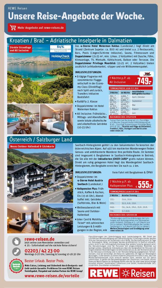 Sehen Sie unten die letzten Kataloge von REWE gültig ab 12 Januar bis 17 Januar. Sie sehen Rezensionen an, teilen Sie Ihre Meinung und Sie können über Katalogprodukte lesen. Sie können auch alle verfügbaren Kataloge aus derselben Kategorie ansehen, um gleichen Produkte in anderen Läden zu vergleichen. Verpassen Sie nicht Schnäppchen und Bereiten Sie Ihre Online-Shopping und Sparen Sie das ganze Jahr. Auf dieser Seite, REWE Angeboten, Prospekte, Promotion und Sonderangebote.