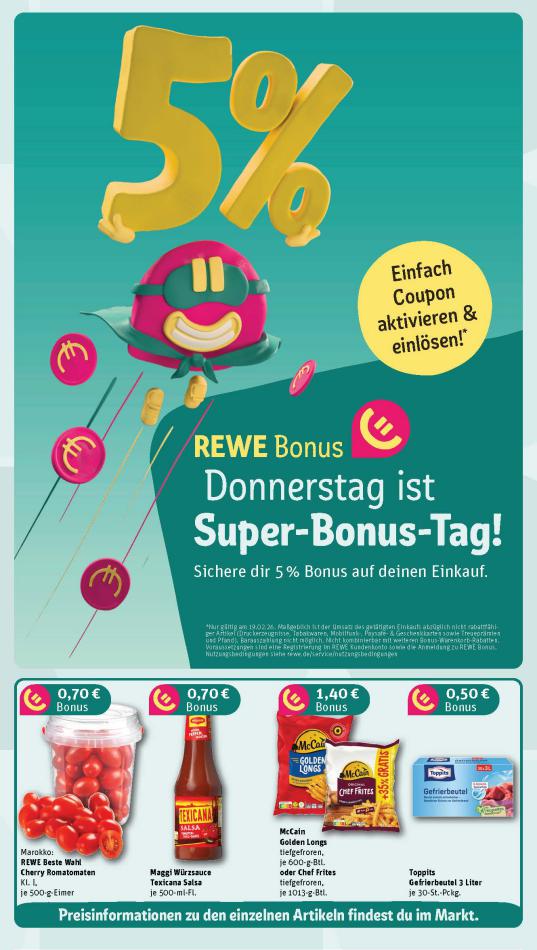 Sehen Sie unten die letzten Kataloge von REWE gültig ab 16 Februar bis 21 Februar. Sie sehen Rezensionen an, teilen Sie Ihre Meinung und Sie können über Katalogprodukte lesen. Sie können auch alle verfügbaren Kataloge aus derselben Kategorie ansehen, um gleichen Produkte in anderen Läden zu vergleichen. Verpassen Sie nicht Schnäppchen und Bereiten Sie Ihre Online-Shopping und Sparen Sie das ganze Jahr. Auf dieser Seite, REWE Angeboten, Prospekte, Promotion und Sonderangebote.